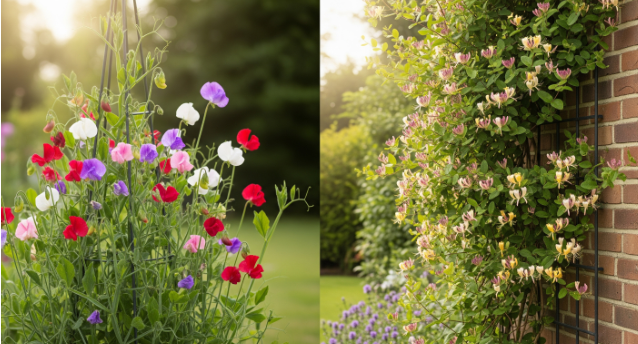 Trellis | Clematis, sweet peas | Easy to move and customize |